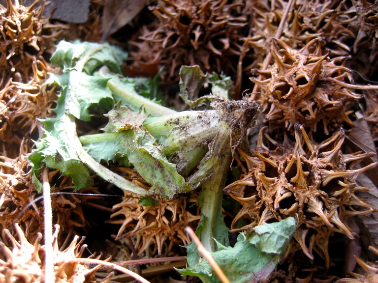 It was routed out from the soil yesterday and resigned to the refuse of the “green” garbage. Stubbornly it retains the succulence of its root stalk even as it is surrounded by the frightening maws of seed pods, angry that they too have been raked up for disposal. There is beauty in death and dignity. This weed seems to retain hope for revival. Perhaps on the rubbish heap its qualities will nourish another soul.