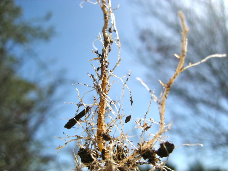 I just had to do something about the weeds in my garden today! I’ve been too kind to the weeds lately, and soon I’ll want to plant tomatoes, cucumbers, zucchini and herbs…so a’pulling I went! As you may have guessed, I find every aspect of weeds to be fascinating in design and utility, and the roots are no exception. When I’m weeding, I fight and do battle with the roots. I try to outwit the cunning things, as they hide in the dark clinging to depths that I cannot reach. I work at them, pulling this way, then another, a little dig here, a little dig there. But often the whole root still manages to elude me. Roots are actually quite camera shy, but I have a mission; I am on assignment; and so clicking away I went. While it is very satisfying to pull weed roots up, I did derive some pleasure from admiring these roots held up against a blue sky in the company of trees.