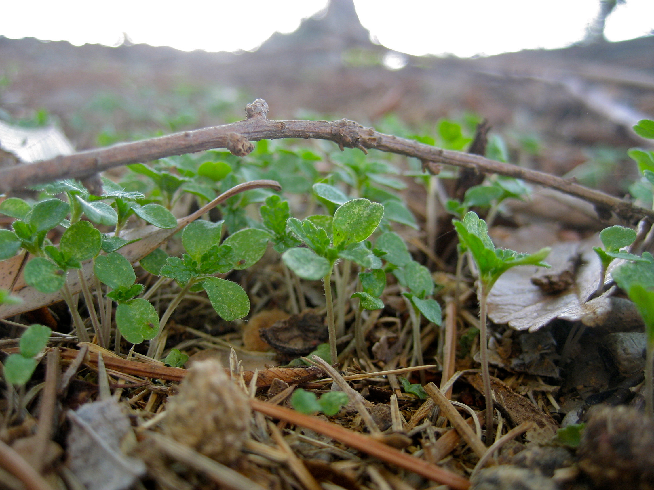 The groundlings typically gathered at the foot of the stage, unable to pay full price for admission. They enjoyed the show from the unfavored viewpoint, but at least they were there. These weed babies have no admission price to pay because they are the show! Their place is under the proscenium arch, center stage. They prefer to command a crowded stage, using their combined strengths to thrive, and so thus they are the crowdlings. They see the usefulness of growing in groups, the benefits to being betwixt one another, the safety in sameness. Case in point: one tiny immature barb might not deter the hand that wishes to uproot them, but a collection of perhaps twenty sharp pointies, just might be enough to buy them one more day. Their fame as a troupe is fleeting however, for soon one among them will grow taller than all and crowd out his brothers, claiming the spotlight of sun for his own. All the world truly is a stage, weed or not.