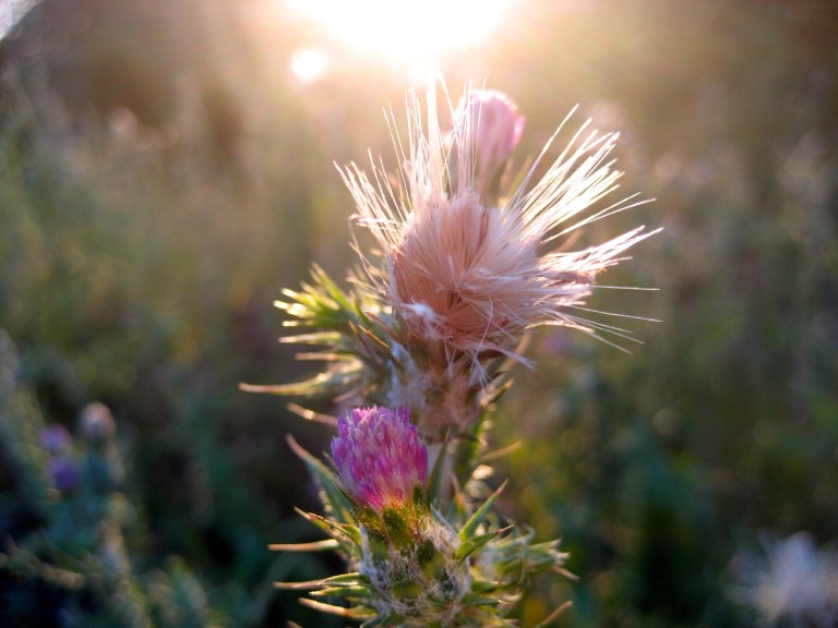 Each day dawns new and fresh, dewed with possibilities, but some days grow into thorny patches of difficulty. On those days the road is rough, the winds are fierce, the ground is hard, the sun is hot. But still we straighten our stems, we pull up strength from our roots, we use the depths to anchor us as we sharpen our own thorns to battle the day. We work hard and, if we can, we look pretty, but that is not always guaranteed. What is pretty and powerful and pink with possibilities is the inner strength to go on and on. To flower at sunset and burst open with seed, with new life and ideas…with pink possibilities.