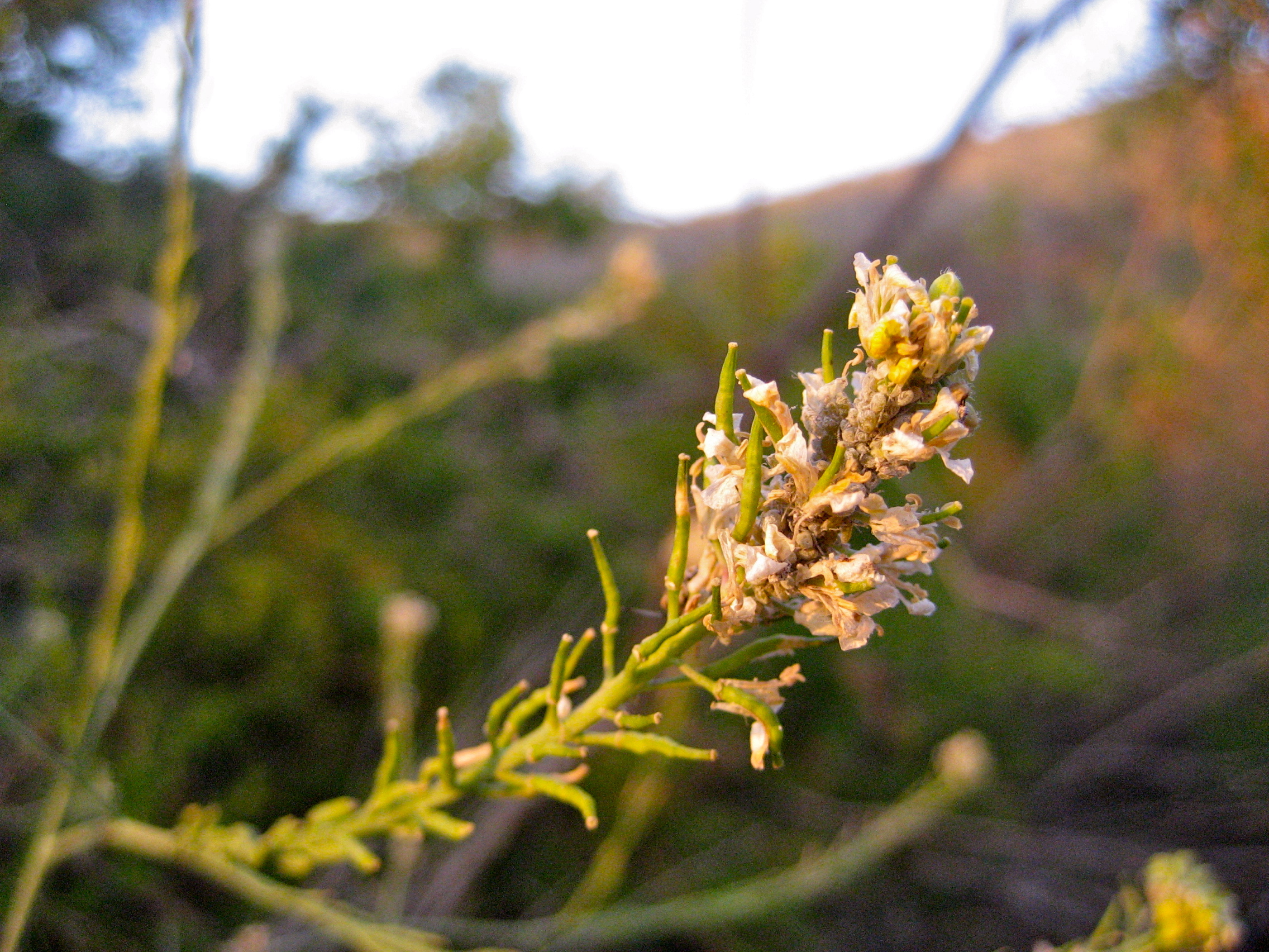 Did you ever notice how a cheerful nod, a half smile, a look of acceptance from a stranger in recognition of your kinship is all that is needed to lift your spirits? When others around you see in you something akin to themselves they acknowledge the connection between us all. We are all part of a fabric woven by common threads and so we can never be truly alone. This humble Sahara Mustard caught the sunset’s glow and my eye as if to say, “You’re all right. I see in you a bit of me. We are kin.”