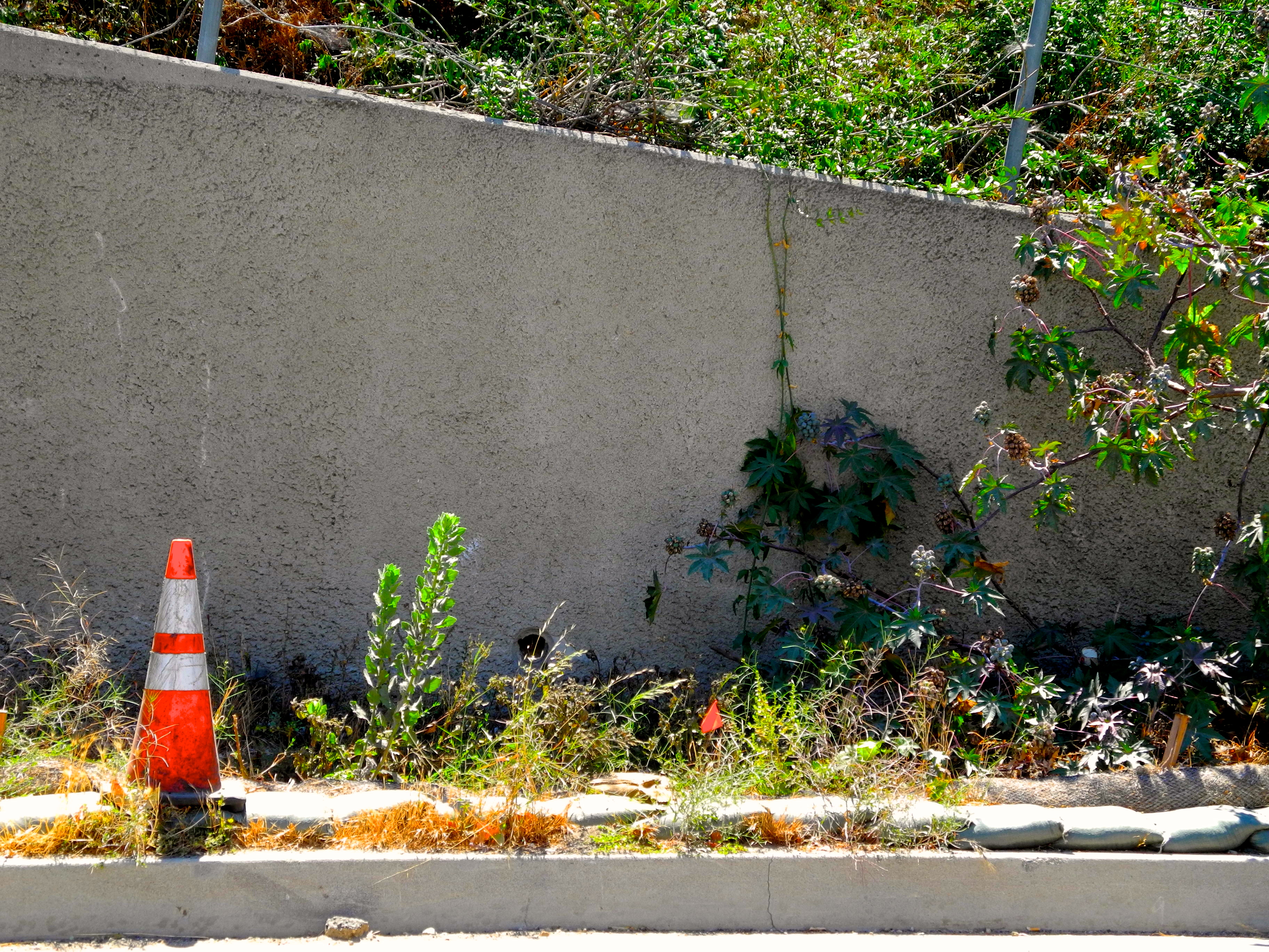 There are no zoning laws for weeds, or land use restrictions, easements, liens or property taxes. Weeds don’t wait for environmental studies or approvals from city hall. This diverse weed community of different species, shapes and sizes goes to prove that weeds will get along just fine, no matter the setting. They have made their family, and no detour will through them off course. The drivers in the bumper to bumper traffic can complain all they like, but the construction equipment, back hoes, ditch diggers, sand bags, jack hammers, and traffic cones make the weeds very happy neighbors to the 405.