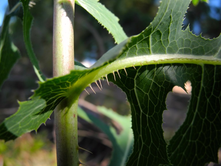 This weed has kept me traveling many paths, searching for the perfect angle to capture its unique beauty. It grows in many directions and this particular plant happened to have just the right intersection of angles to make a photo worthwhile. Only upon writing this post did I manage to identify it, and I am pleasantly surprised that the weed namers gave it the perfect moniker, as it possesses rich green leaves that look somewhat appetizing (except for the thorns, or course – which are quite impressive)! Hence the common name, Prickly Lettuce.