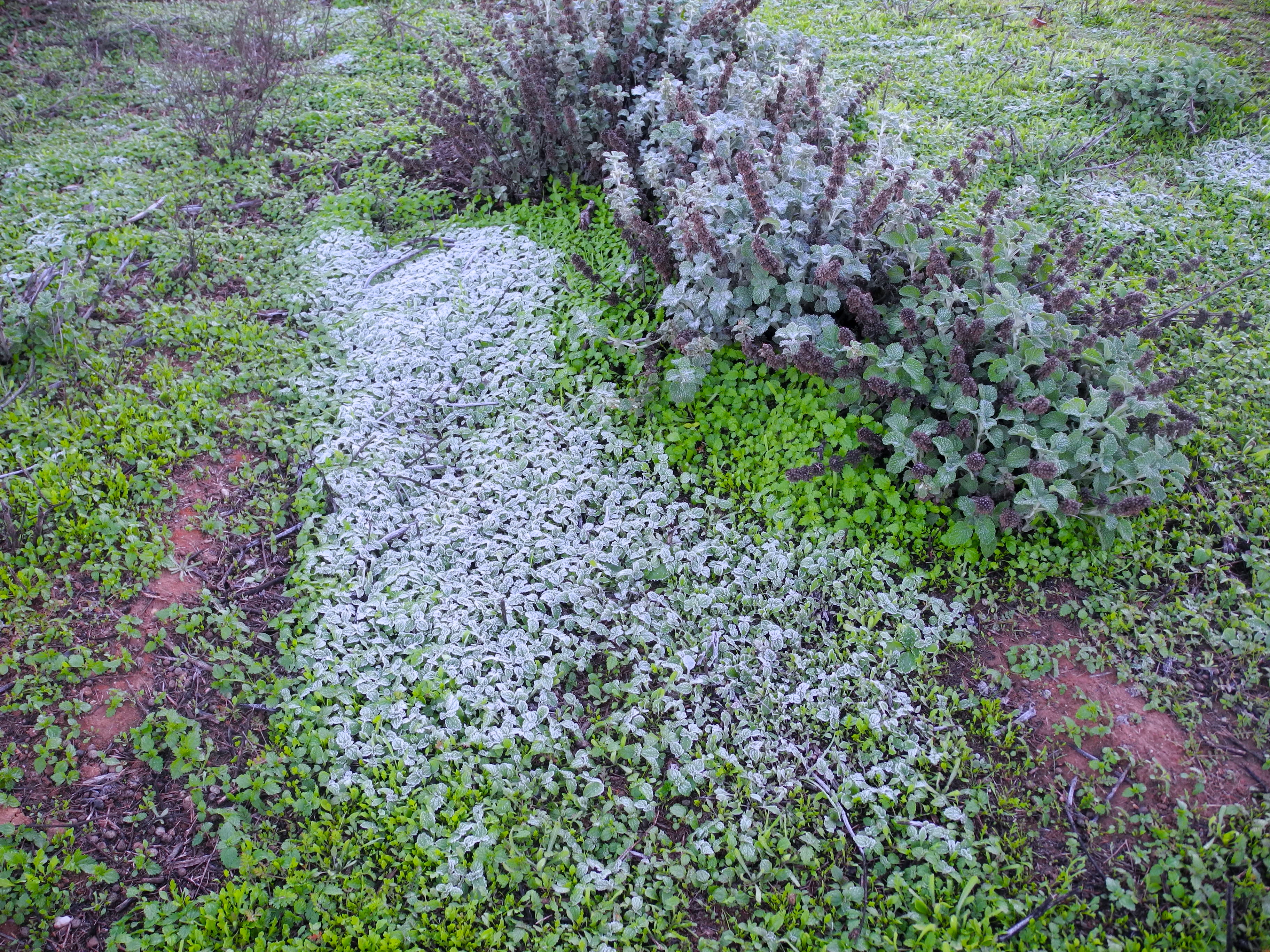 On a grey cold morning, the weeds in the meadow were frosted with winterized dew that highlighted the softness and tenderness of the baby weeds just starting their campaign to dominate the landscape. The waves of greens and grays and purples beckoned and begged to be touched, promising softness in varying hues of green. But even though the weeds were still tender, every touch must be tentative, as the weed defenses are always in play, and never dormant. Prickles still hurt, even when it is a baby weed that wields its thorns.