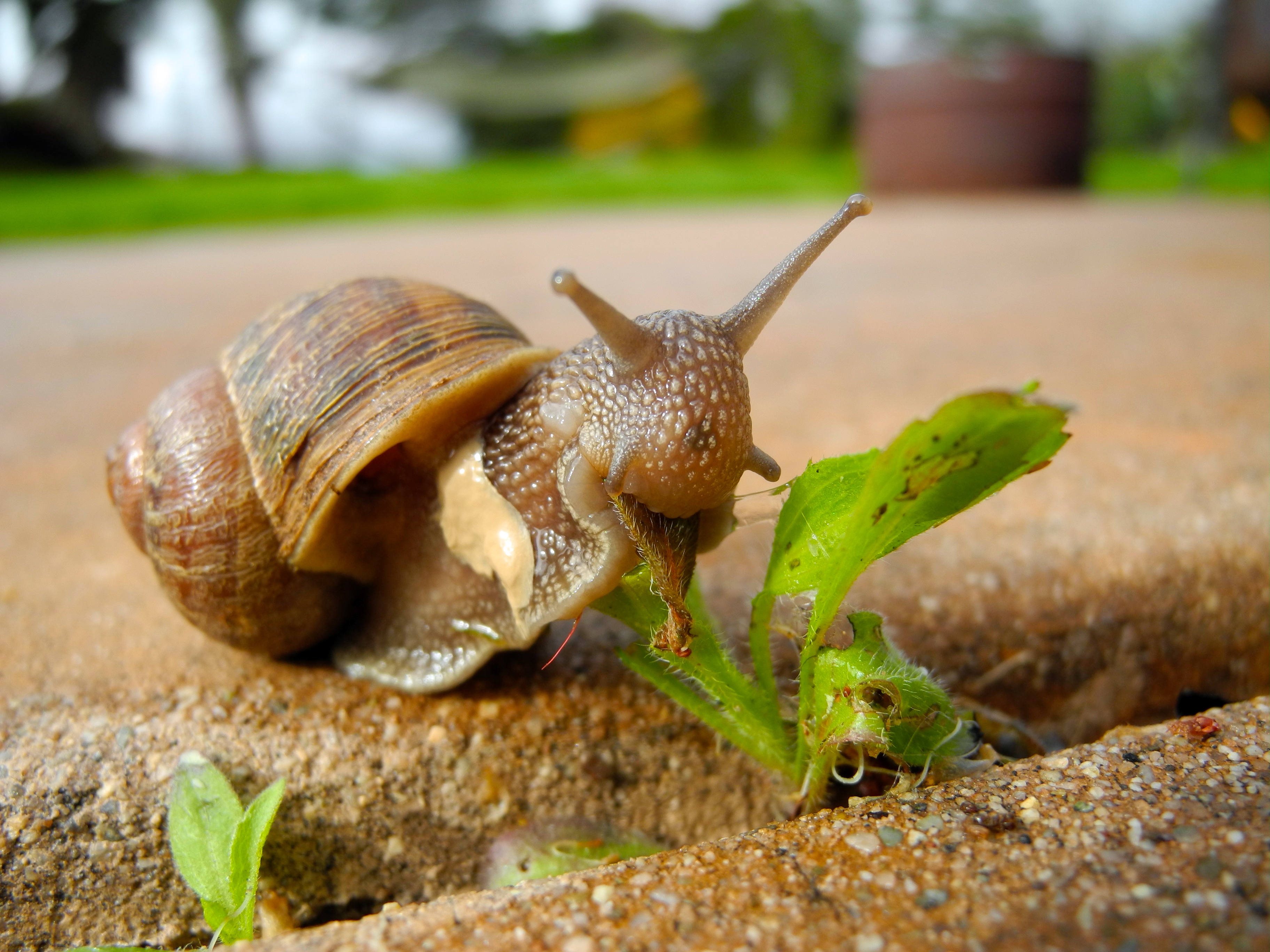 The raw food restaurant was exclusive and chic, with patio seating that was always full. It was almost impossible to get in unless you had a reservation weeks in advance. And it had quickly become “the place” to be seen in. But today, this reclusive gastropod lucked out. The day had dawned grey and heavy with clouds. Just at lunchtime the skies opened up and rain poured down. No trendy hipsters would want to sit through a rain storm and ruin their hair! The patio would be empty!