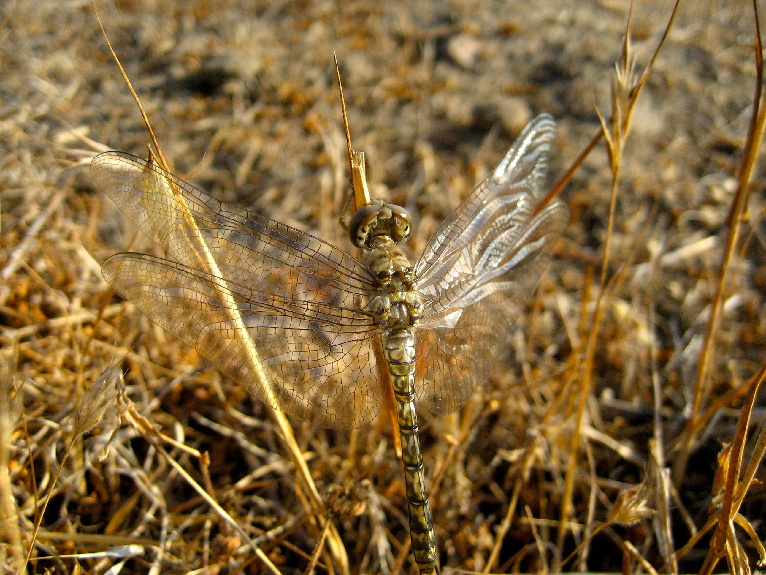 I got a surprise today on a early morning hike. I paused at a patch of dried grasses to enjoy the view and my eye was attracted to the glimmer of translucent wings. I moved in close to savor the stilled beauty of a dragonfly with all its colors muted. I thought perhaps the creature was a deceased relic, simply a shell, and so I moved in closer.